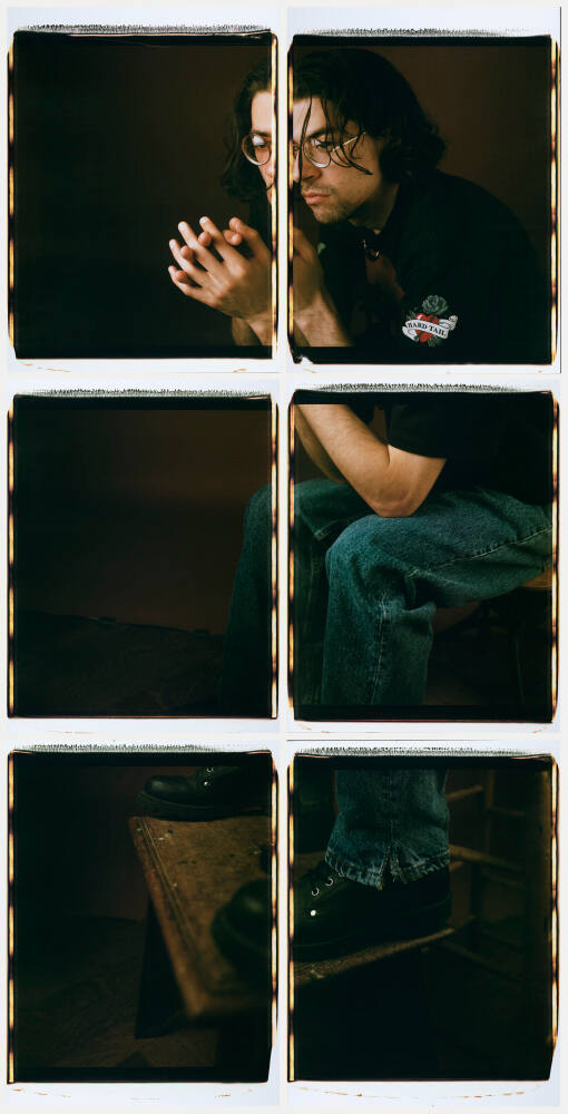 DescriptionFragmented portrait of a man composed of six large-format polaroid prints. He wears round glasses, a black shirt with a patch on his left sleeve that reads "Hard Tail", and jeans. He is seated, mostly in profile, with his elbows on his knees and his hands loosely clasped.ProvenancePurchased from Stephen Daiter Gallery, Chicago, IL by Vintage Works, Ltd., Chalfont, PA;