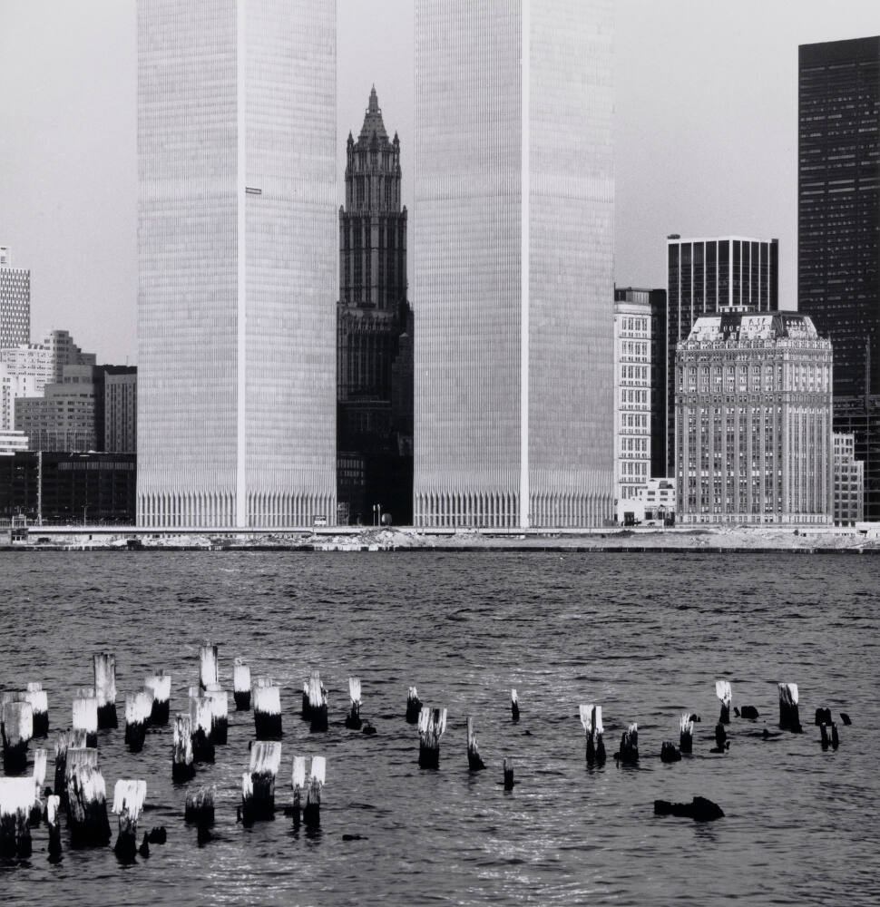 InscribedOn sheet verso, center, in pencil: "World Trade Centers / New York, NY - / Taken from Johnson Ave / Jersey City, NJ - / DP"