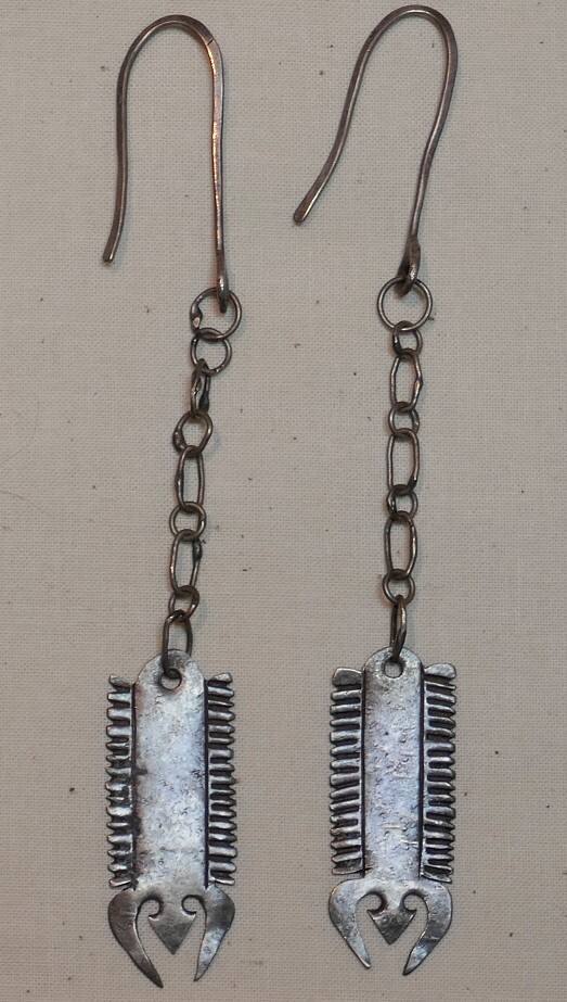 DescriptionPair of classic silver Plains earrings commonly referred to as "crawdads," their distinctive form is more evocative of a centipede.ProvenanceMr. Larry Frank, Arroyo Hondo, New Mexico;
