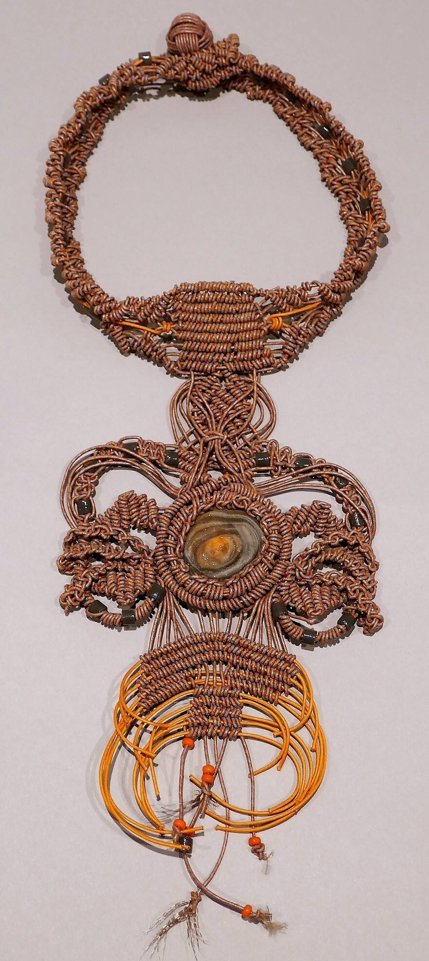 MediumPlastic, coated wire, feathers, stone, glass beads