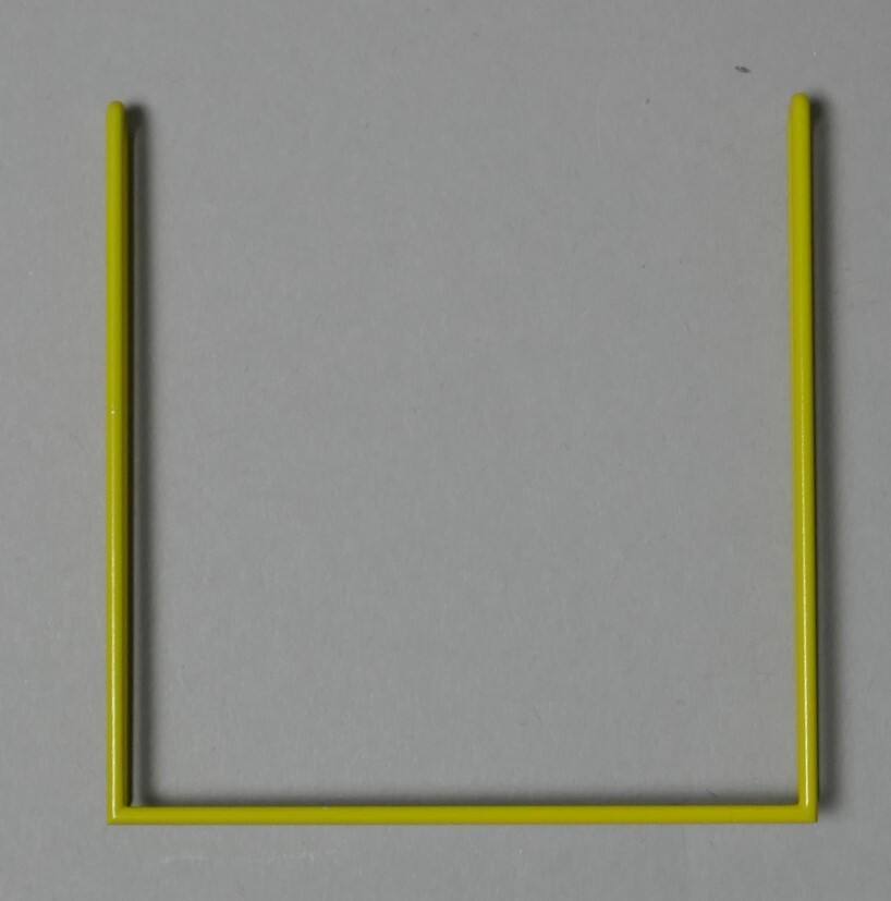 DescriptionA yellow wire pin in the shape of a squared U, with the pins folded behind each of the vertical sides.ProvenanceMarjorie Schick (1941 2017), Pittsburg, KS;