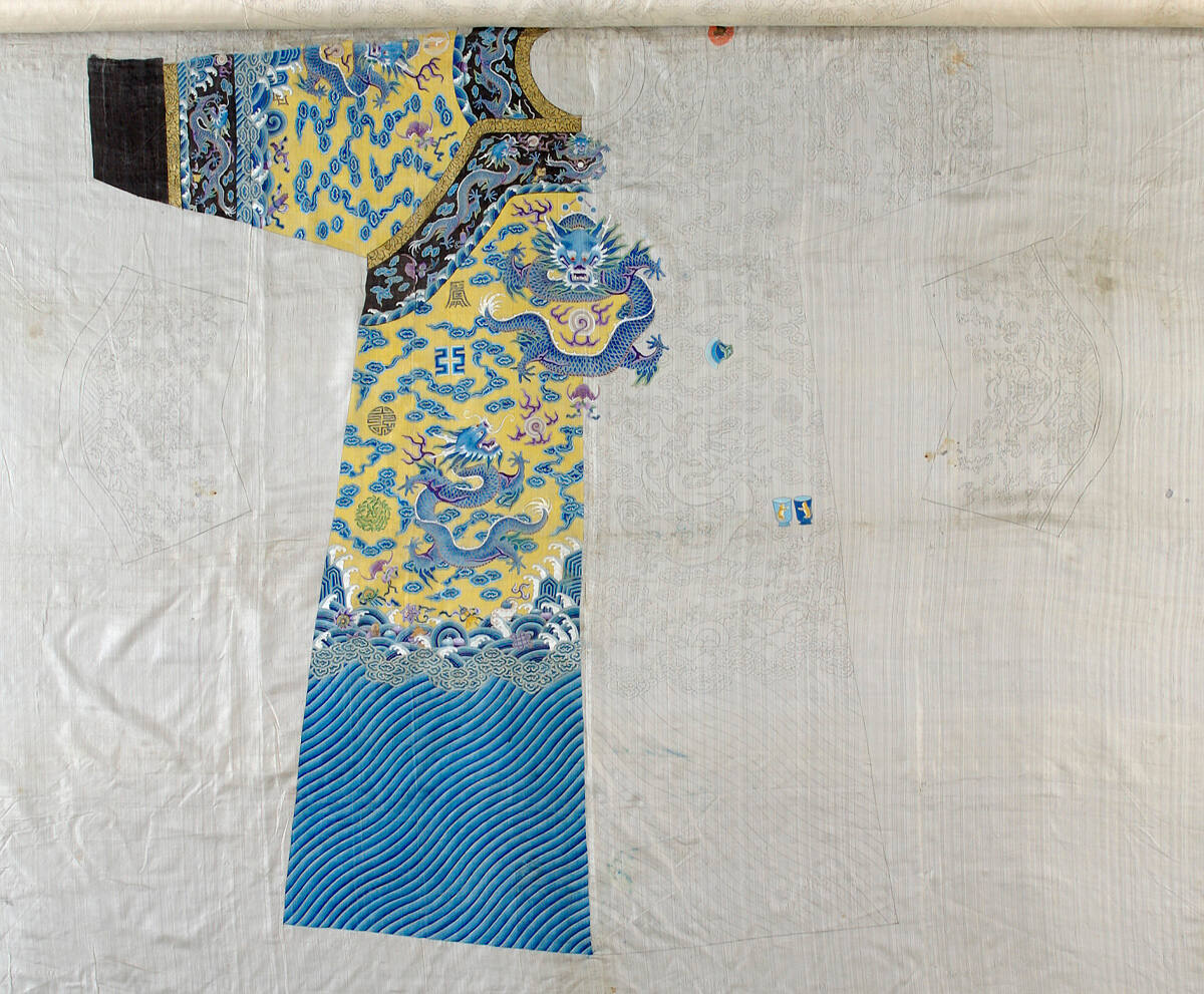 DescriptionPattern for an Imperial 12-symbol robe, drawn in ink and partially painted on white silk.