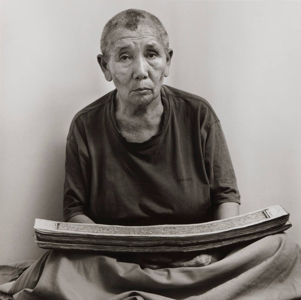 InscribedOn label attached to sheet verso, lower right, in black pen: "Choedon Dolkar reads / her prayers, manju ka / Tilla Diaries (25), 2009 / p.2016 1/5"