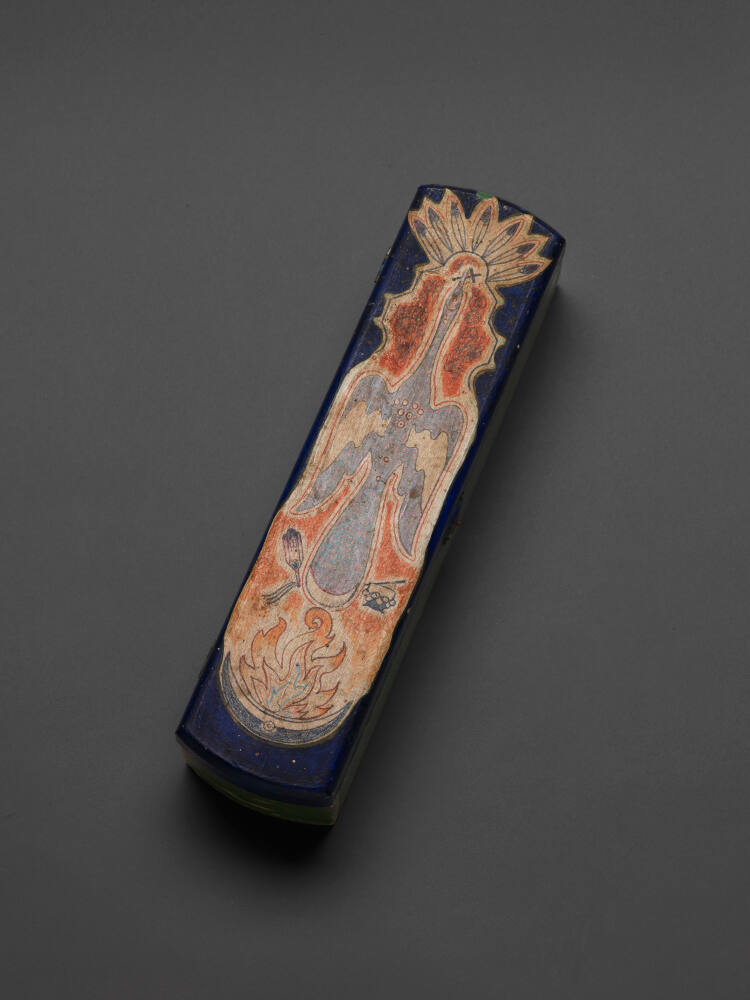 DescriptionSmall wooden box with a waterbird and other imagery painted on drawn on the top surface.ProvenanceJohn and Lisa McKay, Mission Hills, KS;