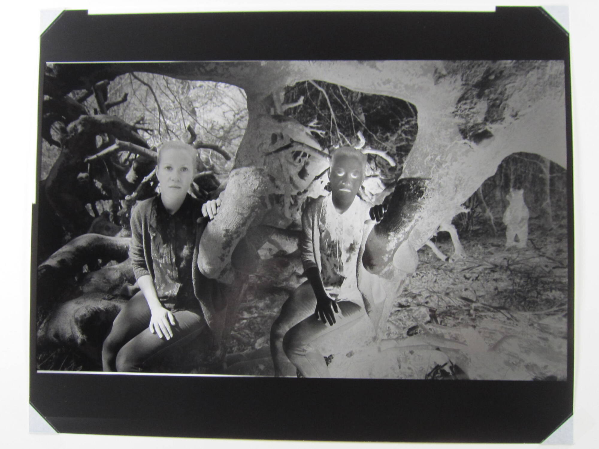 DescriptionImage of woman seated on a large tree branch. The same image is solarized and repeated on the right half of the frame. A standing bear appears in the backround near the right edge.ProvenanceJerry Uelsmann, Gainesville, FL;