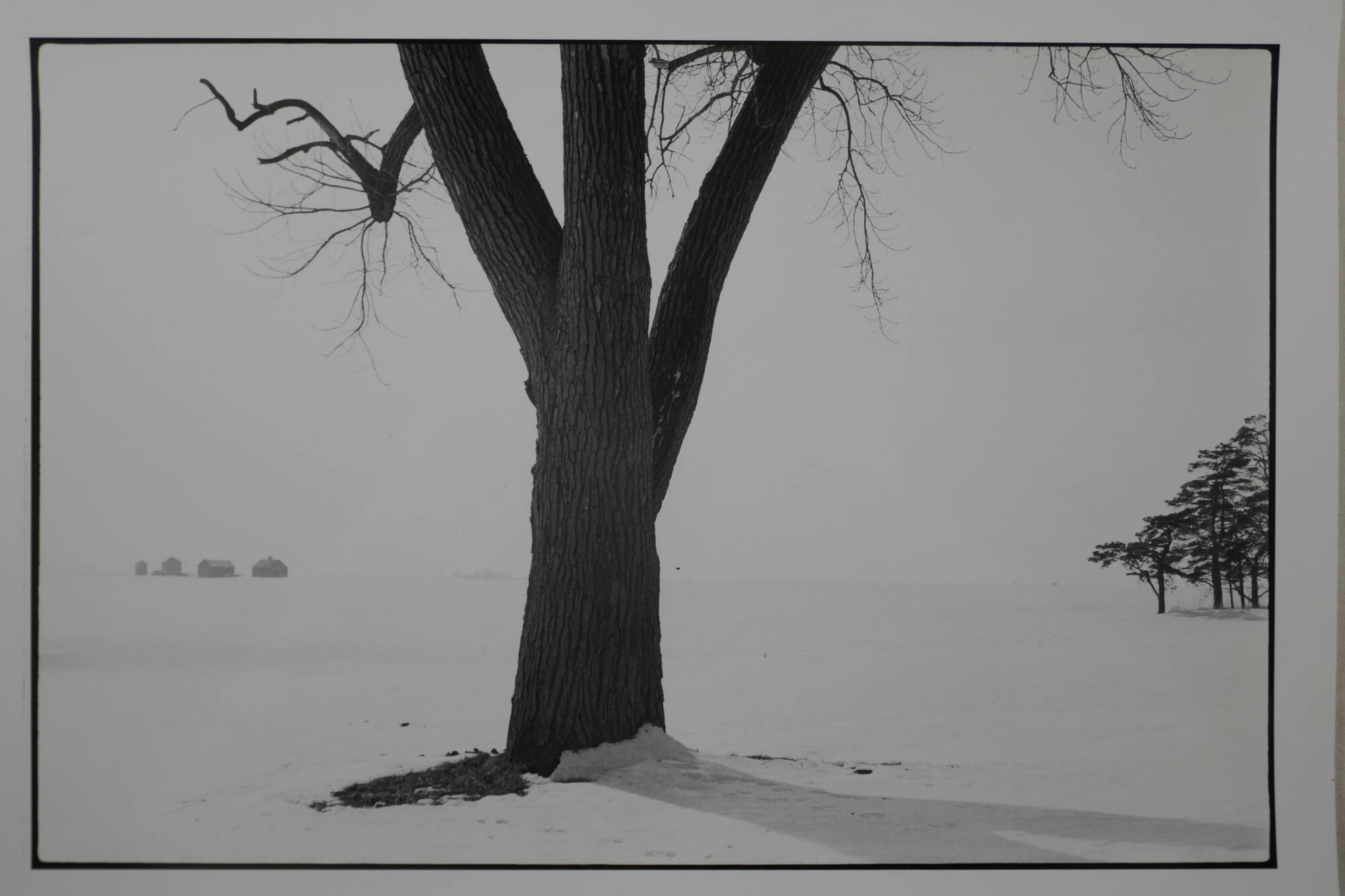 DescriptionImage of a snow-covered landscape with a tree in the center and four structures in the background.ProvenanceWilliam Lyons, Kansas City, MO;