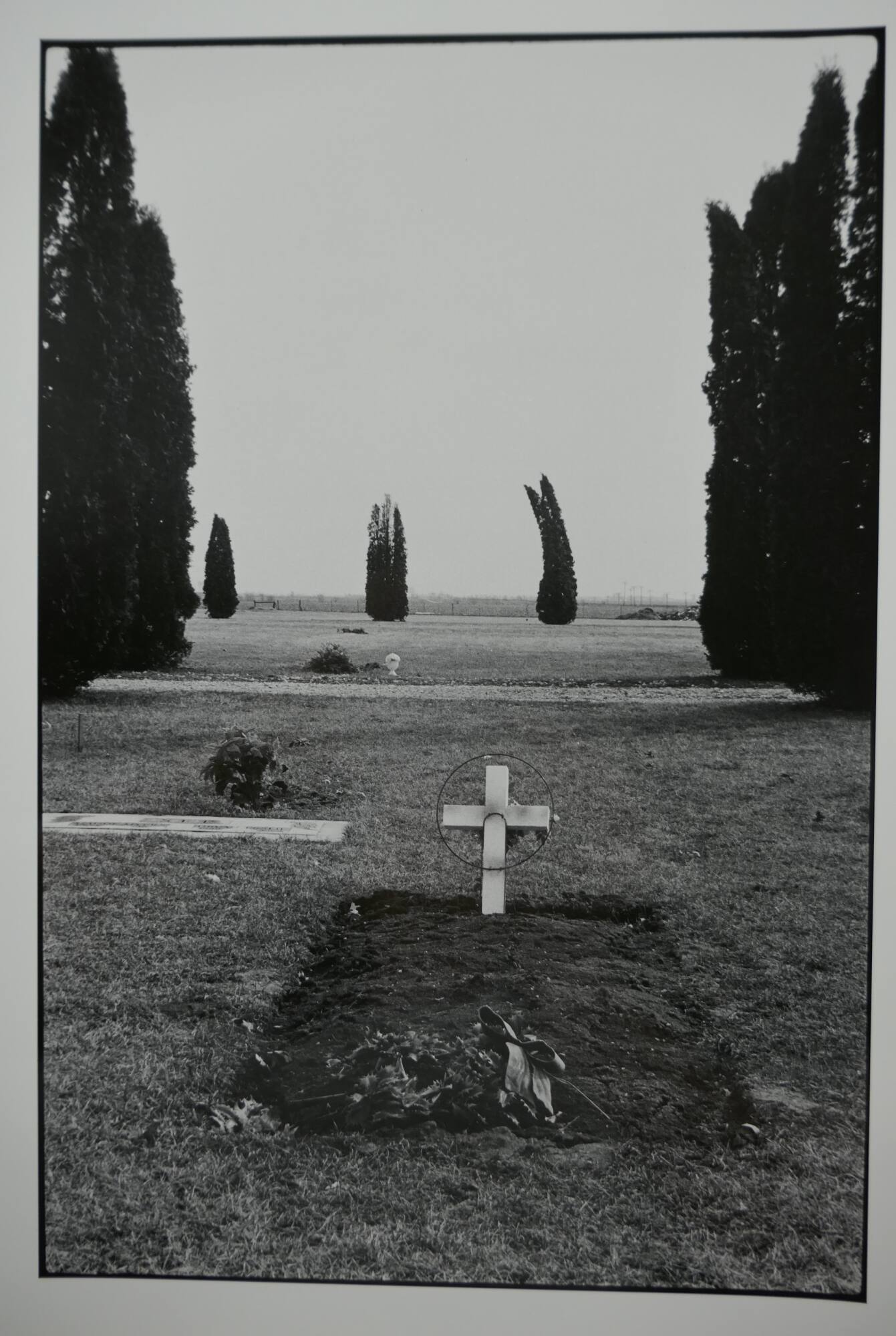 DescriptionImage of a recently covered gravesite with a cross at the top and tall, thin trees in the background.ProvenanceWilliam Lyons, Kansas City, MO;