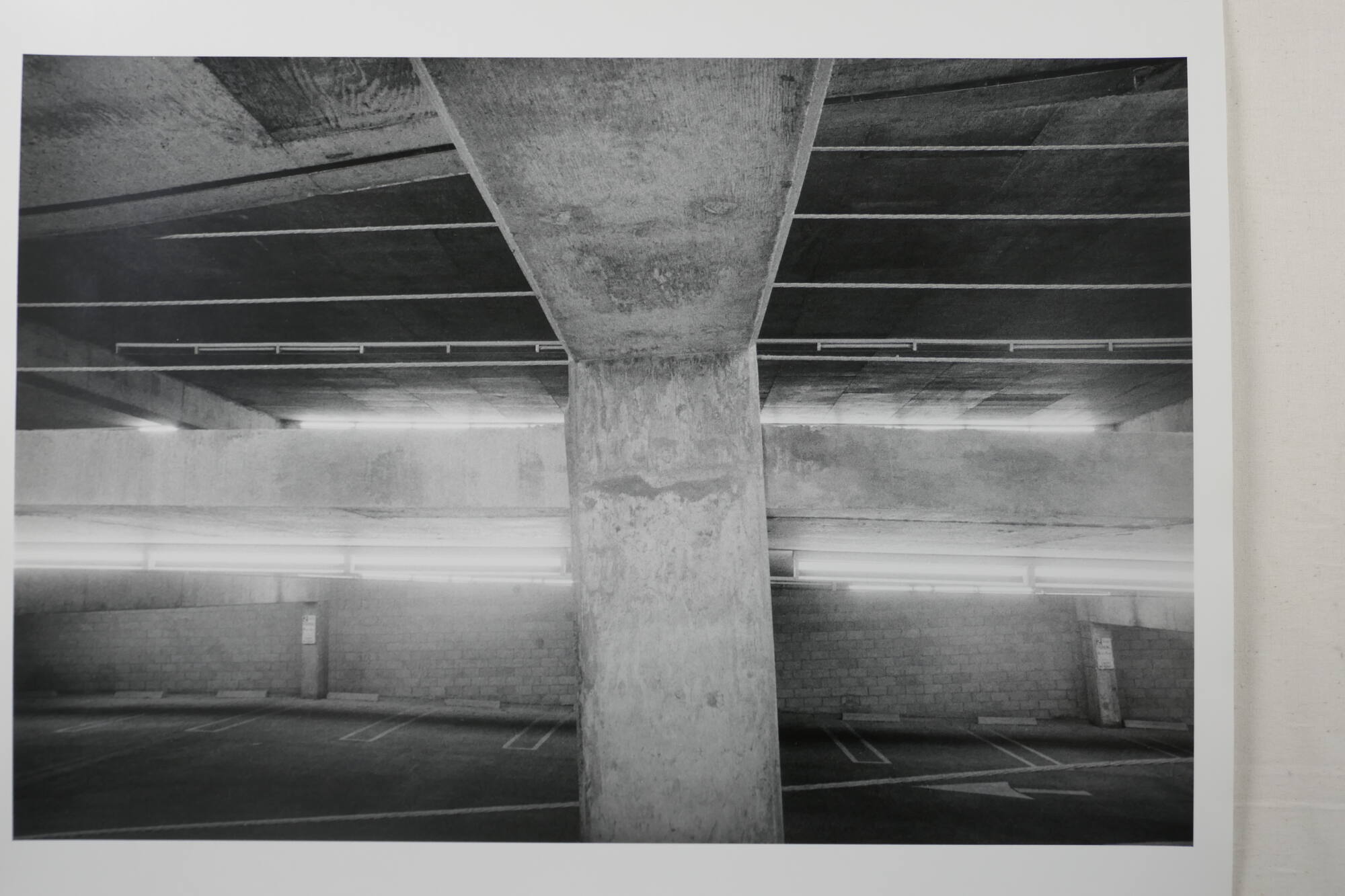 DescriptionImage of an empty parking garage with a concrete column in the center dividing a row of glowing lights and horizontal steel cables.ProvenanceWilliam Lyons, Kansas City, MO;