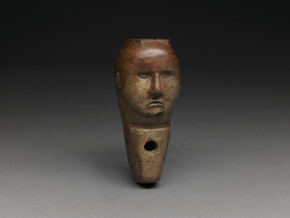 DescriptionPipe bowl carved to depict a human head - a Woodlands warrior with roached hair and facial tattoos.ProvenancePurchased from Steve Elwood, Decorah, IA by The Nelson-Atkins Museum of Art, Kansas City, MO, 2019.
