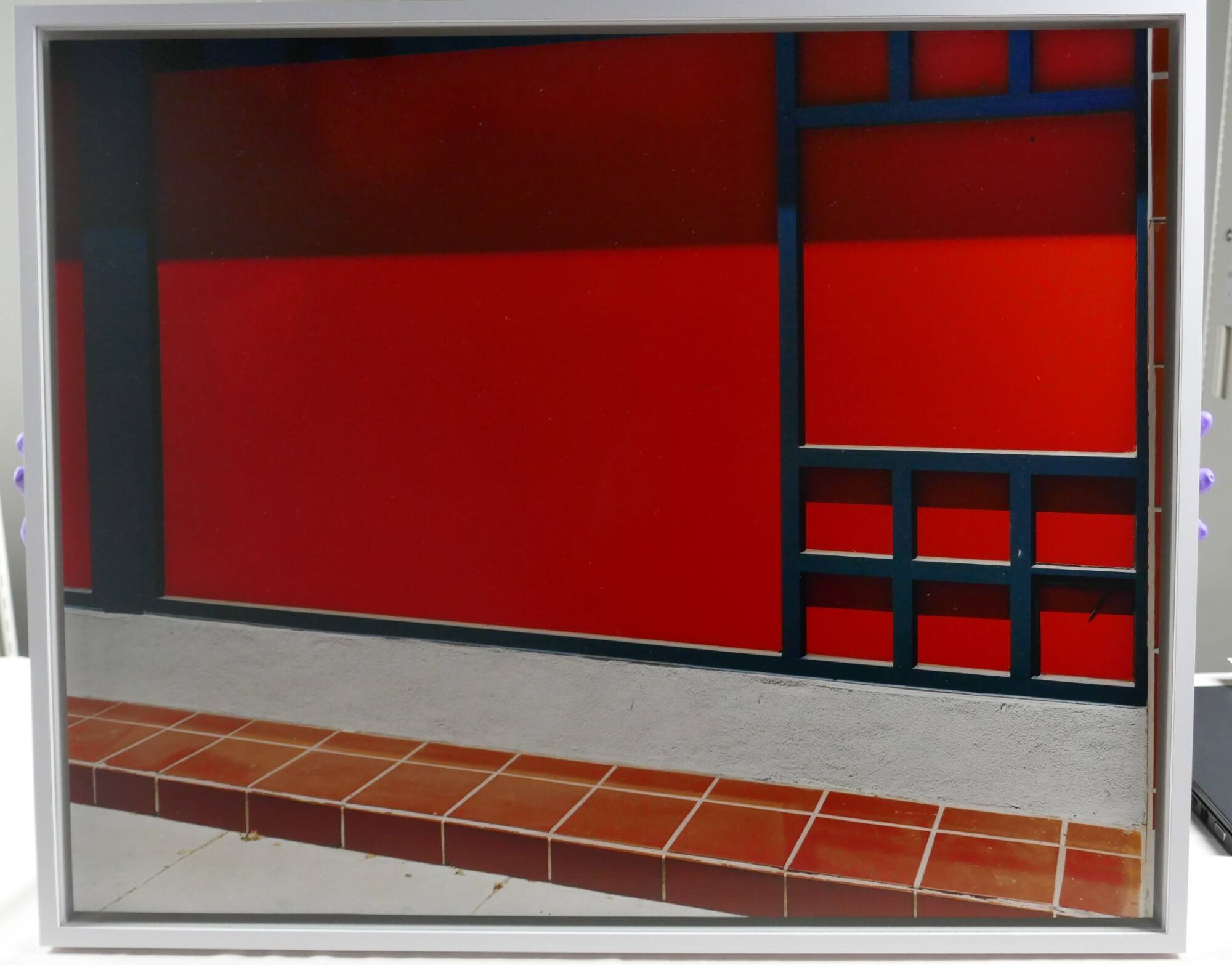 DescriptionImage of a concrete platform with brown square tiles along the front edge and a red wall with a metal grid on the right.ProvenanceHall Family Foundation, Kansas City, MO, 2020;