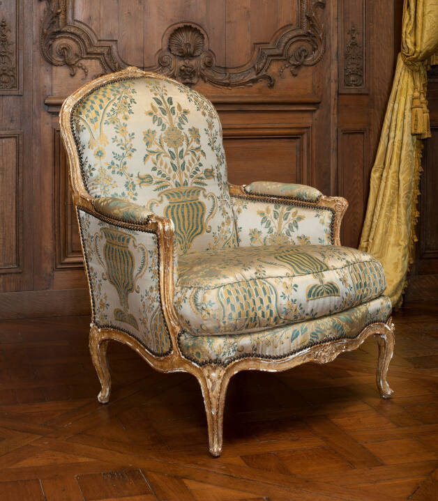 DescriptionCovered with antique silk in cream, green and yellow.ProvenanceWith Charles Michel, Paris, by October 1932;