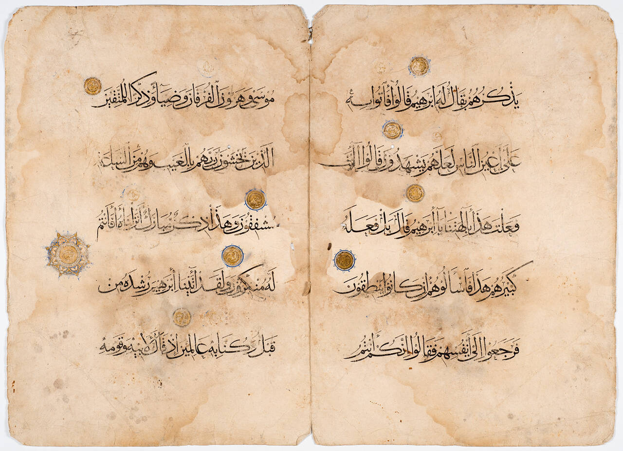[1] Nelson-Atkins Archives, RG01/01 Director's Office Records, Paul Gardner, box 4, folder 41, 1935 Sickman purchases en route. Before Laurence Sickman assumed his role as Curator of Asian Art in June 1935, he traveled through South Asia and the Middle East on his way from China to the U.S. While in Beirut, Sickman purchased three double pages from a Qur’an from Asad J. Rustum, a professor at the American University of Beirut.