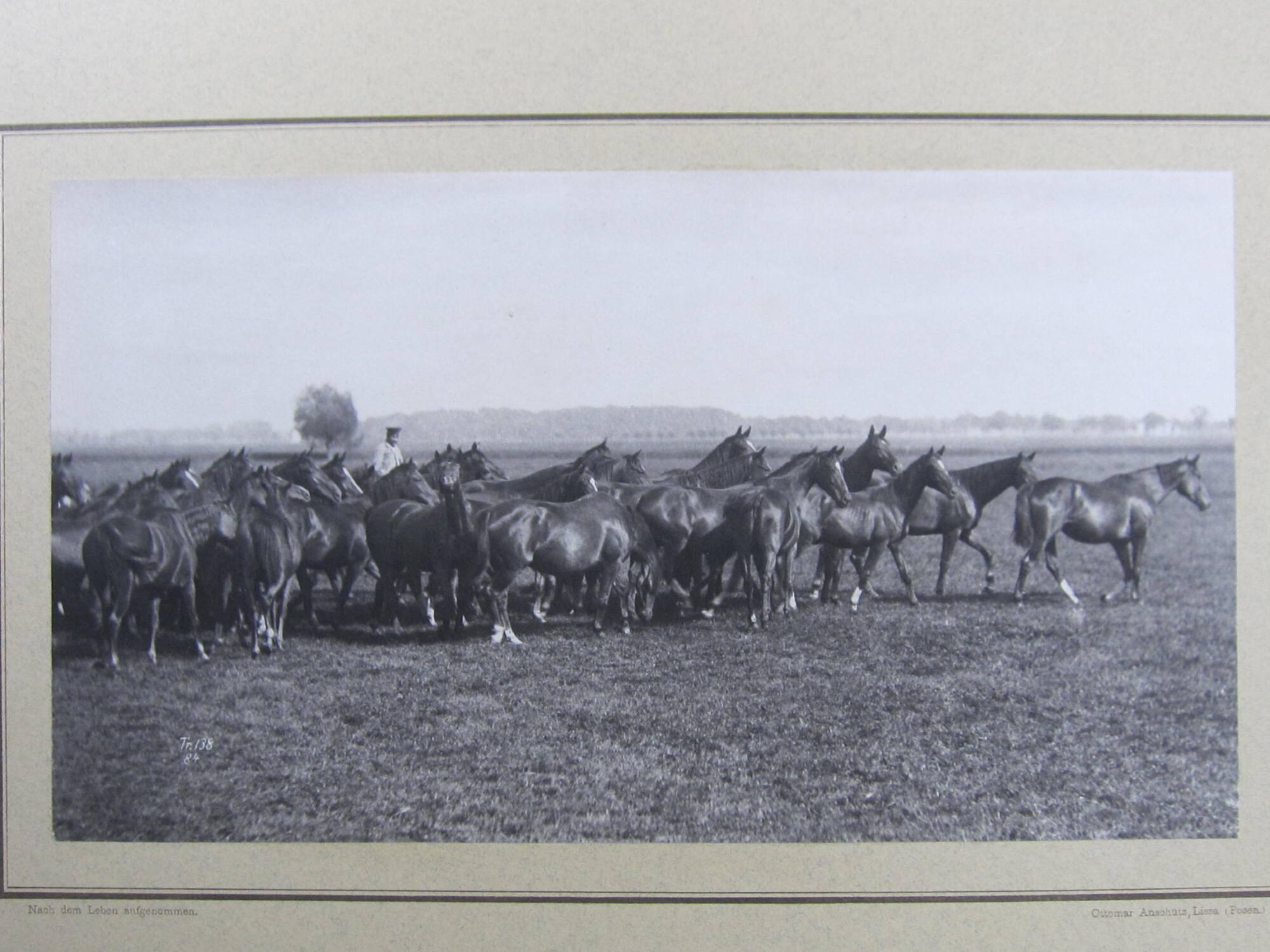 White label attached to mount recto, bottom center, printed in black ink: "Trakehnen, Königl. Hauptgestüt. Mutterstuten-Guddin."