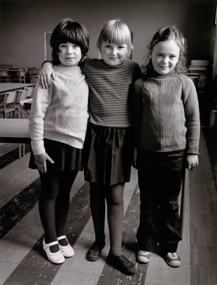 DescriptionImage of three young girls standing with their arms around one another. They are in a room with a striped floor.ProvenanceThe Hall Family Foundation, Kansas City, MO, 2020;