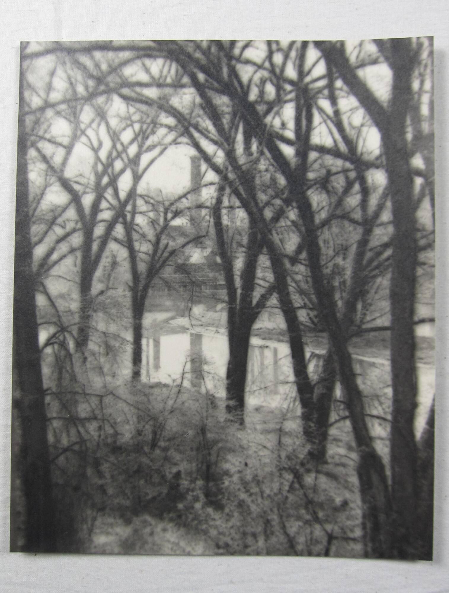 DescriptionImage of softly focused trees with bare branches overlapping; through the branches we see a body of water leading to a structure with a smokestack rising above.ProvenanceHall Family Foundation, Kansas City, MO, 2020;