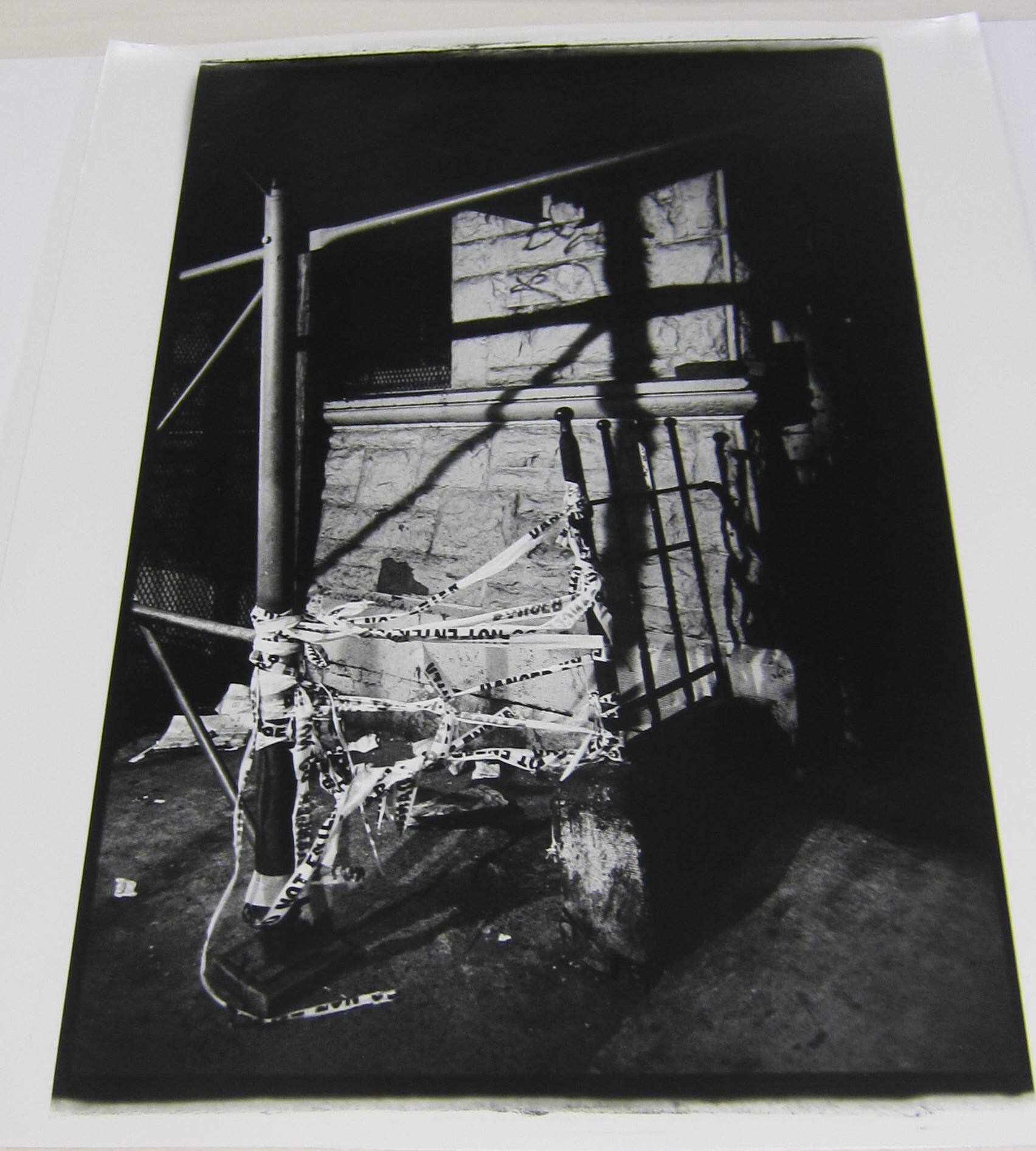 DescriptionImage of the corner of a stone building with tape reading "Do Not Enter" tied loosely around the scaffolding in front.ProvenanceGeorge Segal, New York, NY;