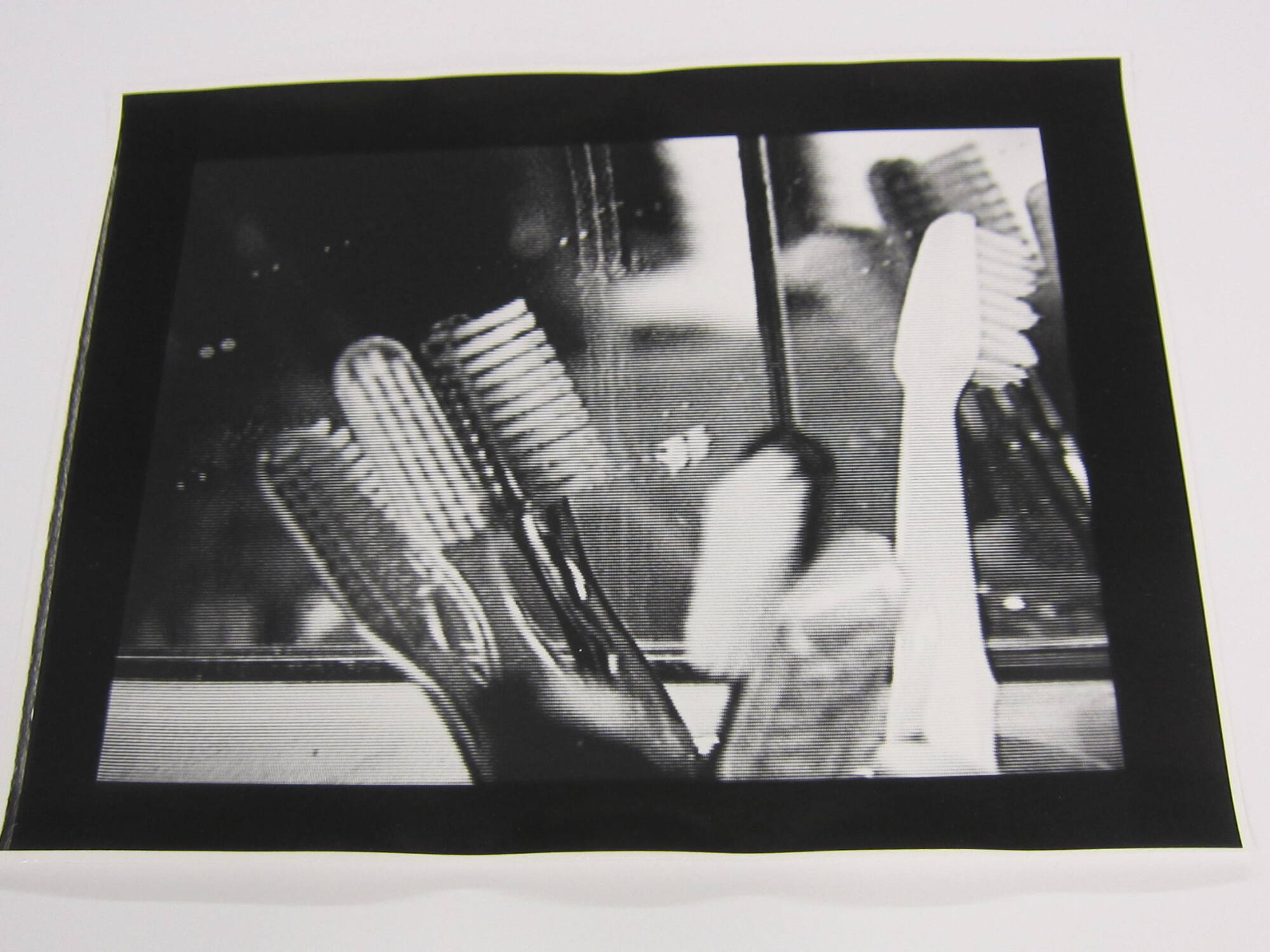 InscribedOn sheet verso, bottom, in pencil: ""TOOTHBRUSHES" - BATH ROOM STILL VIDEO BY GEORGE SEGAL - NOVEMBER 1993".