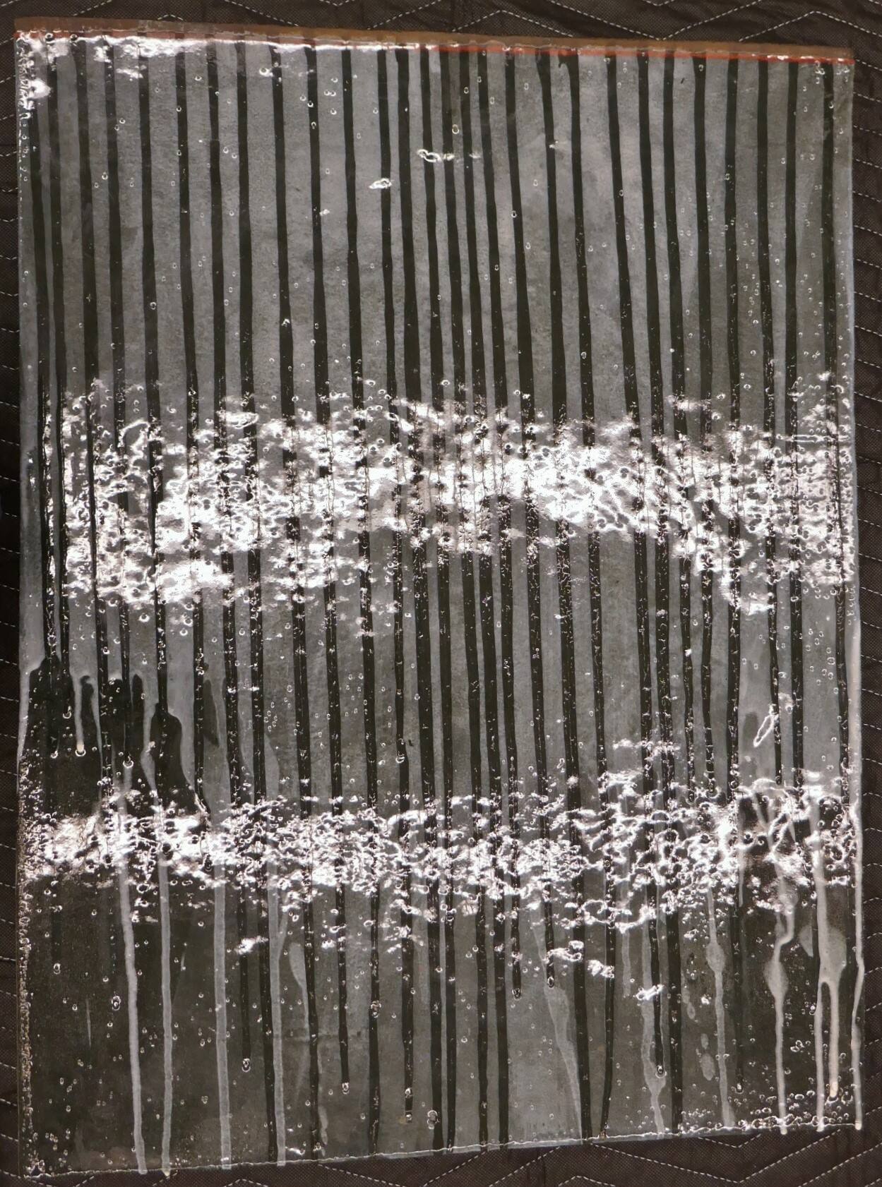 DescriptionStoneware slab with layers of dark grey, white, and black glazes. Black, vertical, linear glaze over white glaze with some splashes and streaks. Four short legs on the rear.Exhibition HistoryRecent Gifts of Architecture, Design and Decorative Arts, The Nelson-Atkins Museum of Art, Kansas City, Missouri, July 30 2022–January 21 2024, no cat.