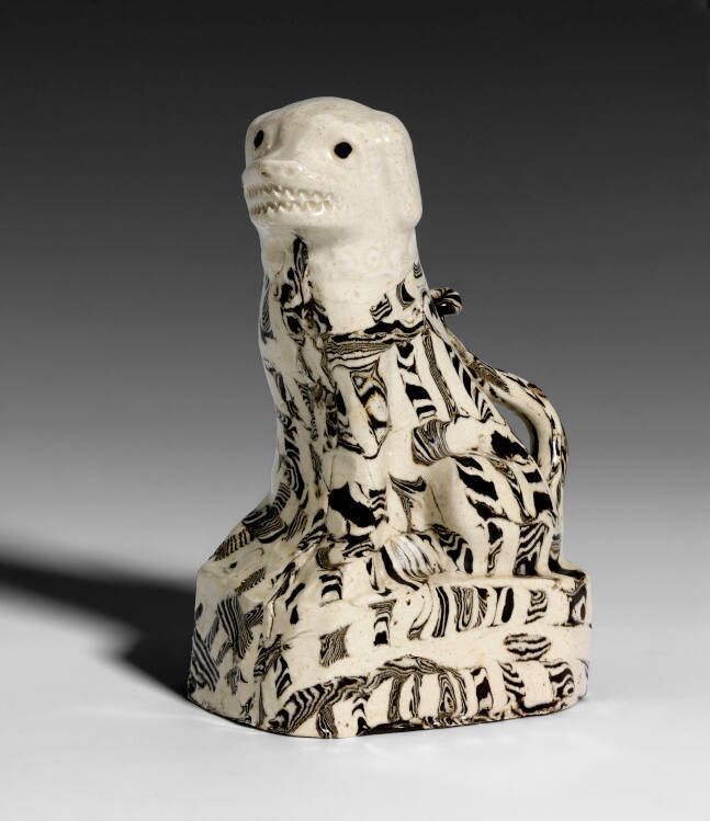 Gallery LabelThe multi-hued clays wedged together, known as agateware, have been manipulated to animate the dog's coat with lively spots.