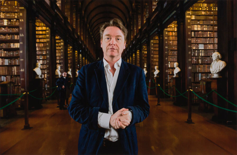 InscribedOn mount verso, on white label, lower right, in black type with black pen: "Lauren Greenfield / Photographer / [signature] / Economist and best-selling author David McWilliams, 50, in the Old Library at Trinity College, Dublin, 2016. / Title / 2016 / Date / The is edition number 1/5 made from the original / negative. / Reproduction of this photograph is prohibited without / written consent of the photographer. / © Lauren Greenfield"