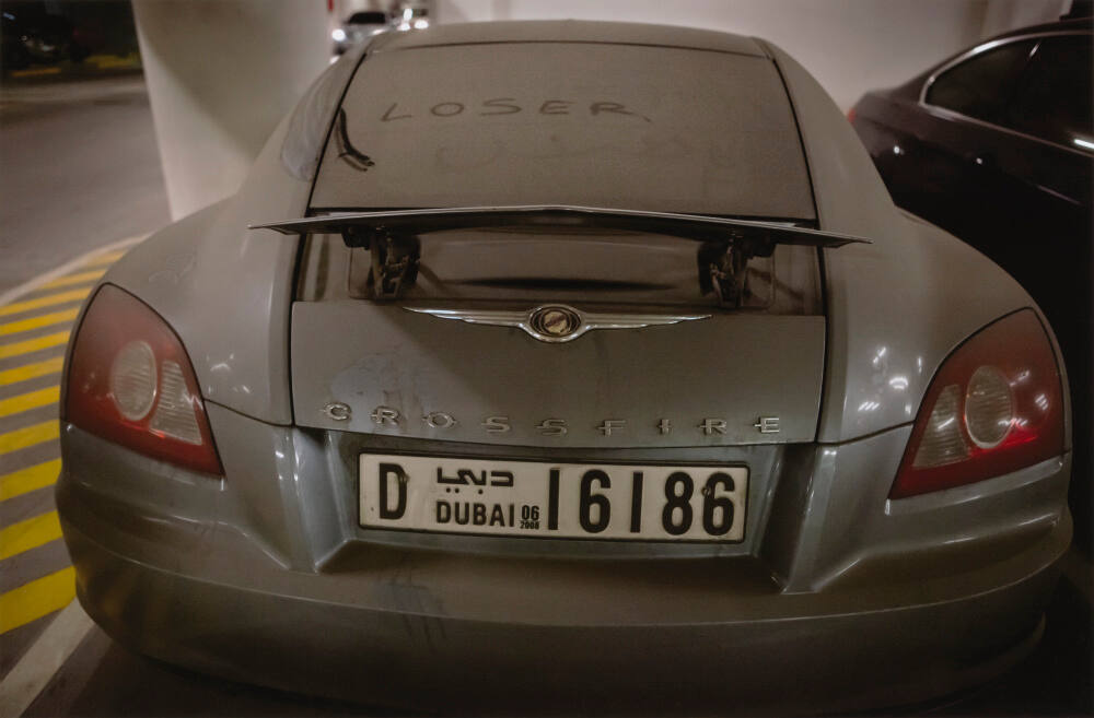 InscribedOn mount verso, on white label, lower right, in black type with black pen: "Lauren Greenfield / Photographer / [signature] / An abandoned car in the airport parking garage, Dubai, 2009. / Title / 2009 / Date / The is edition number 1/5 made from the original / negative. / Reproduction of this photograph is prohibited without / written consent of the photographer. / © Lauren Greenfield"