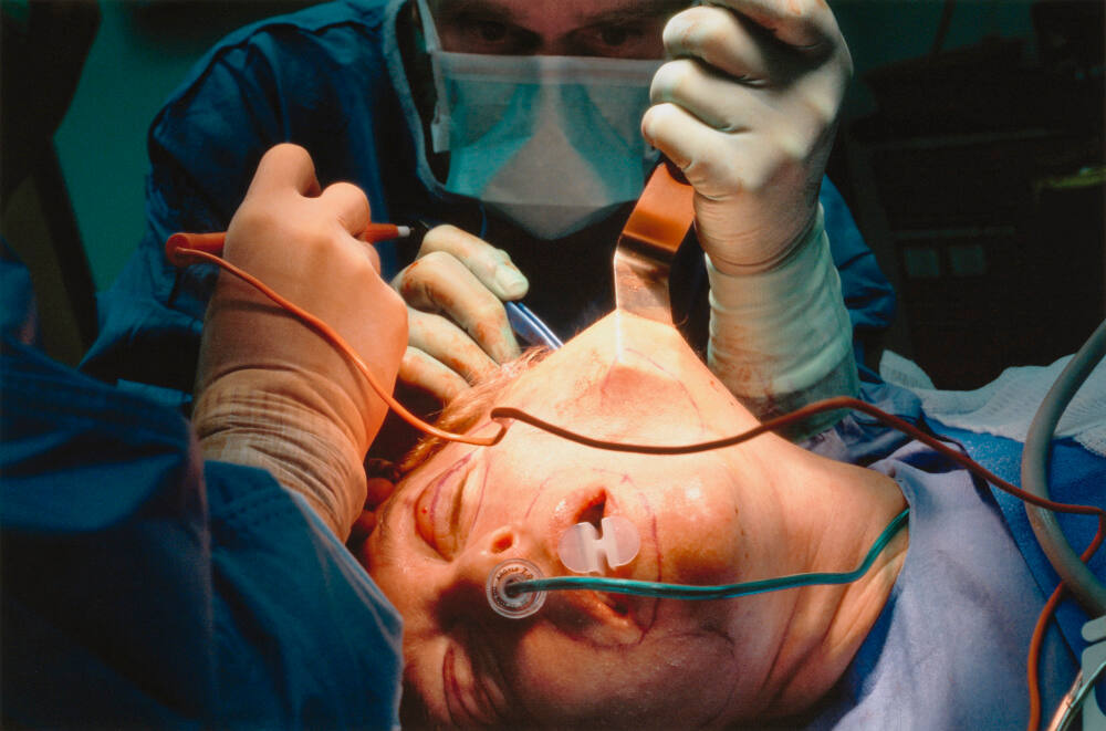 InscribedOn mount verso, on white label, lower right, in black type with black pen: "Lauren Greenfield / Photographer / [signature] / Dr. Alan Matarasso performs a face-lift on Sydelle that includes procedures on her neck, eyelids, upper lip, / and under her eyes, New York City, 1998. / Title / 1998 / Date / This is edition number 1/5 made from the original / negative. / Reproduction of this photograph is prohibited without / written consent of the photographer. / © Lauren Greenfield"