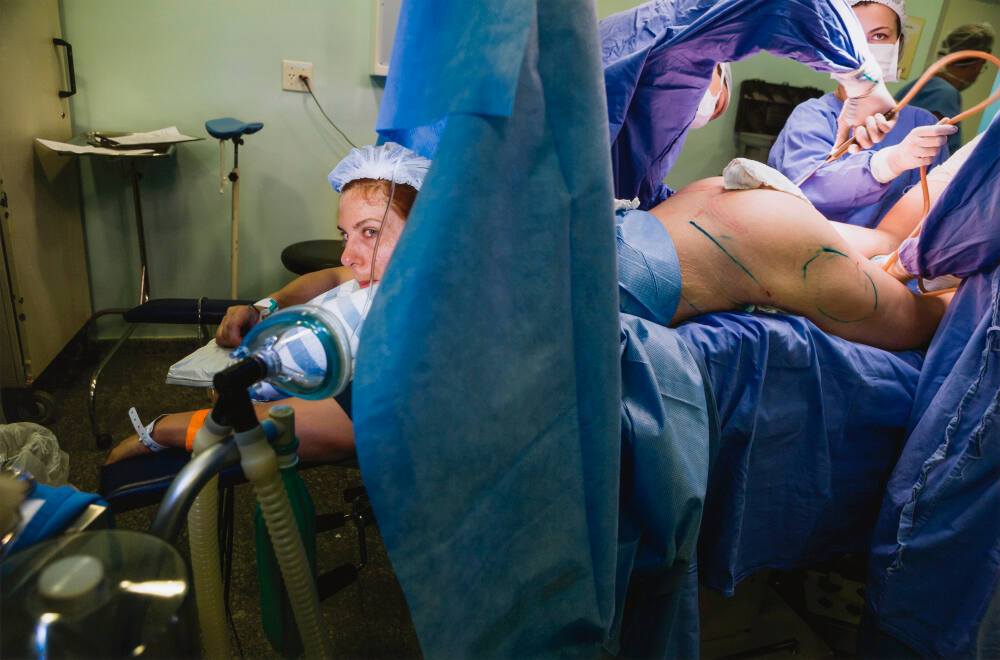 Cathy, 31, a school bus driver from Centreville, Virginia, during surgery, Santos, Brazil