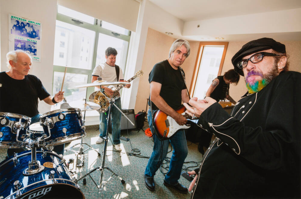 1970s pop star Mark Hudson (right), 57, rehearses Rock and Roll Fantasy Camp participants for a dream gig at the House of Blues, West Hollywood, California