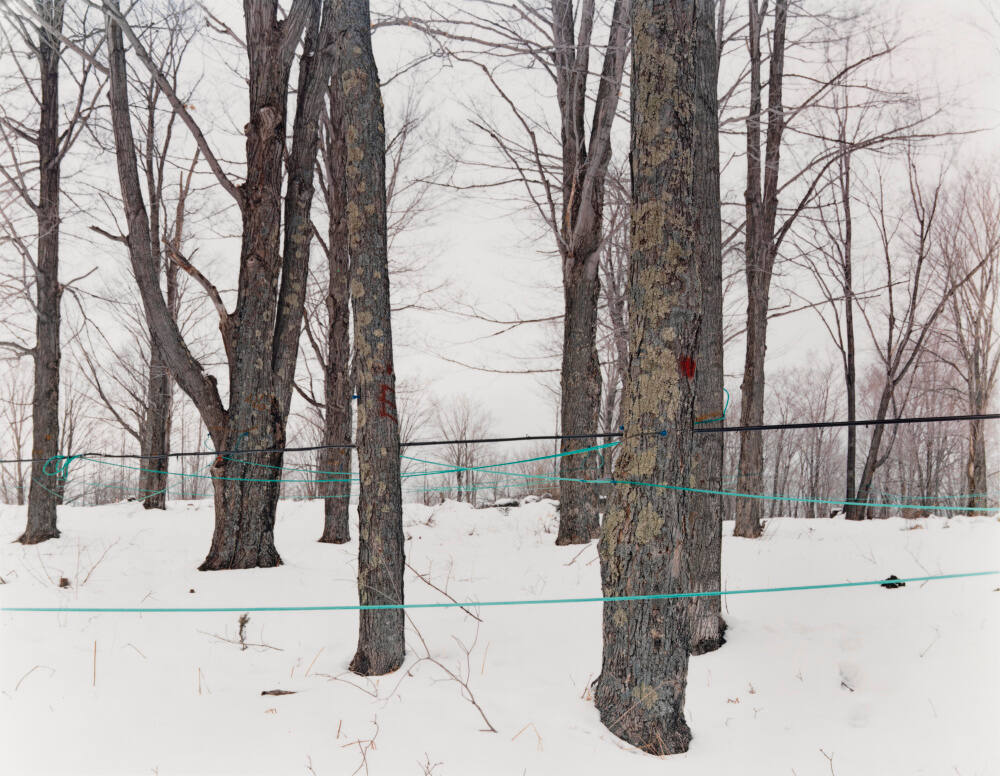 DescriptionImage of trees divided by taut sections of blue rope which stretch throughout the snow-covered forest.ProvenanceJoel Sternfeld, New York;