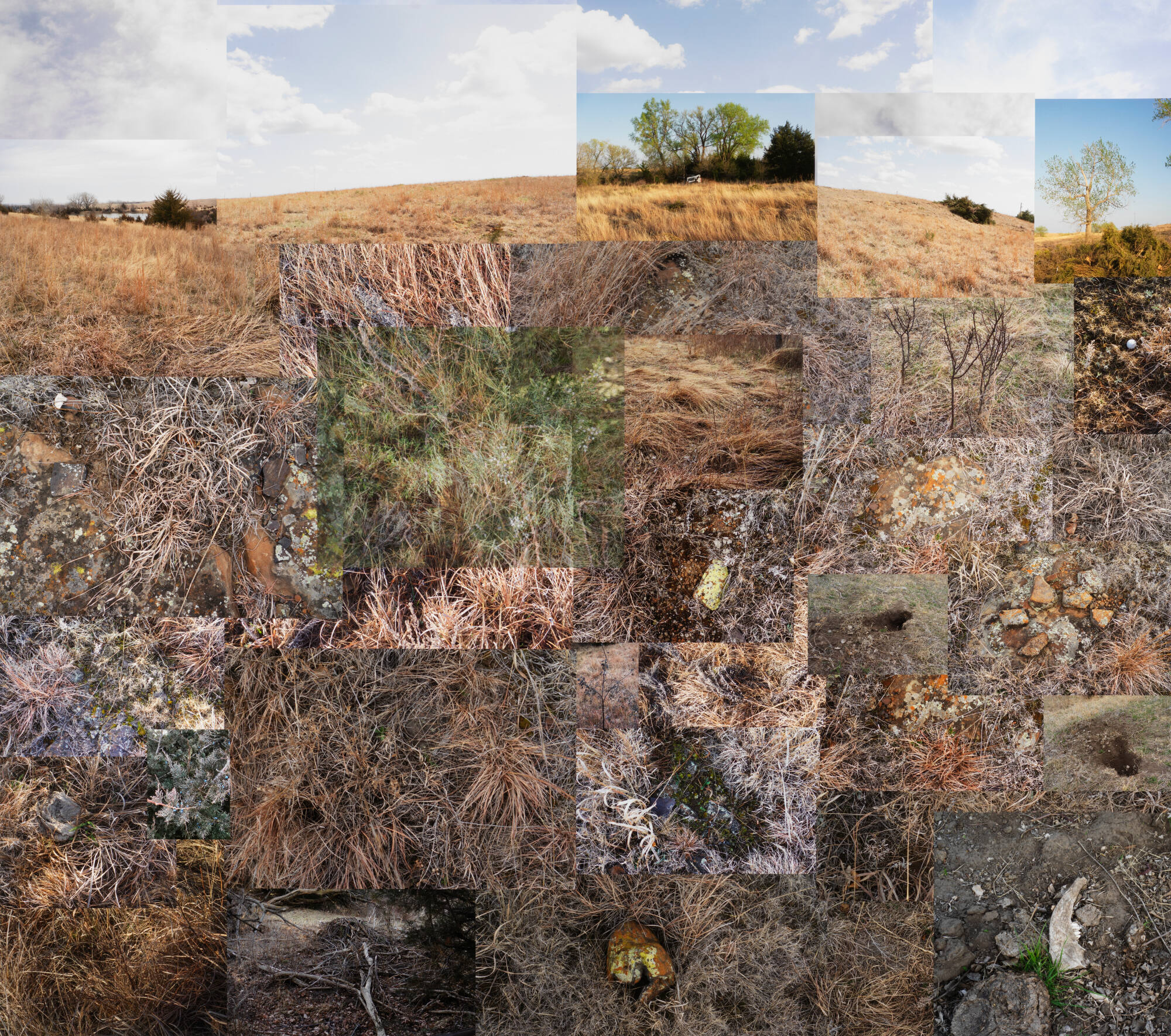 Photographed over the course of five months, the images that comprise The South Pasture depict a season of activity. Of particular interest to Terry Evans were eastern red cedar trees, a potentially invasive species. Evans recounts the long history of tending and neglecting these trees: "The first Indigenous people here would destroy the trees in a controlled burn . . . Once white immigrants settled here and began building fences and houses, that great extensive burning couldn't happen anymore."