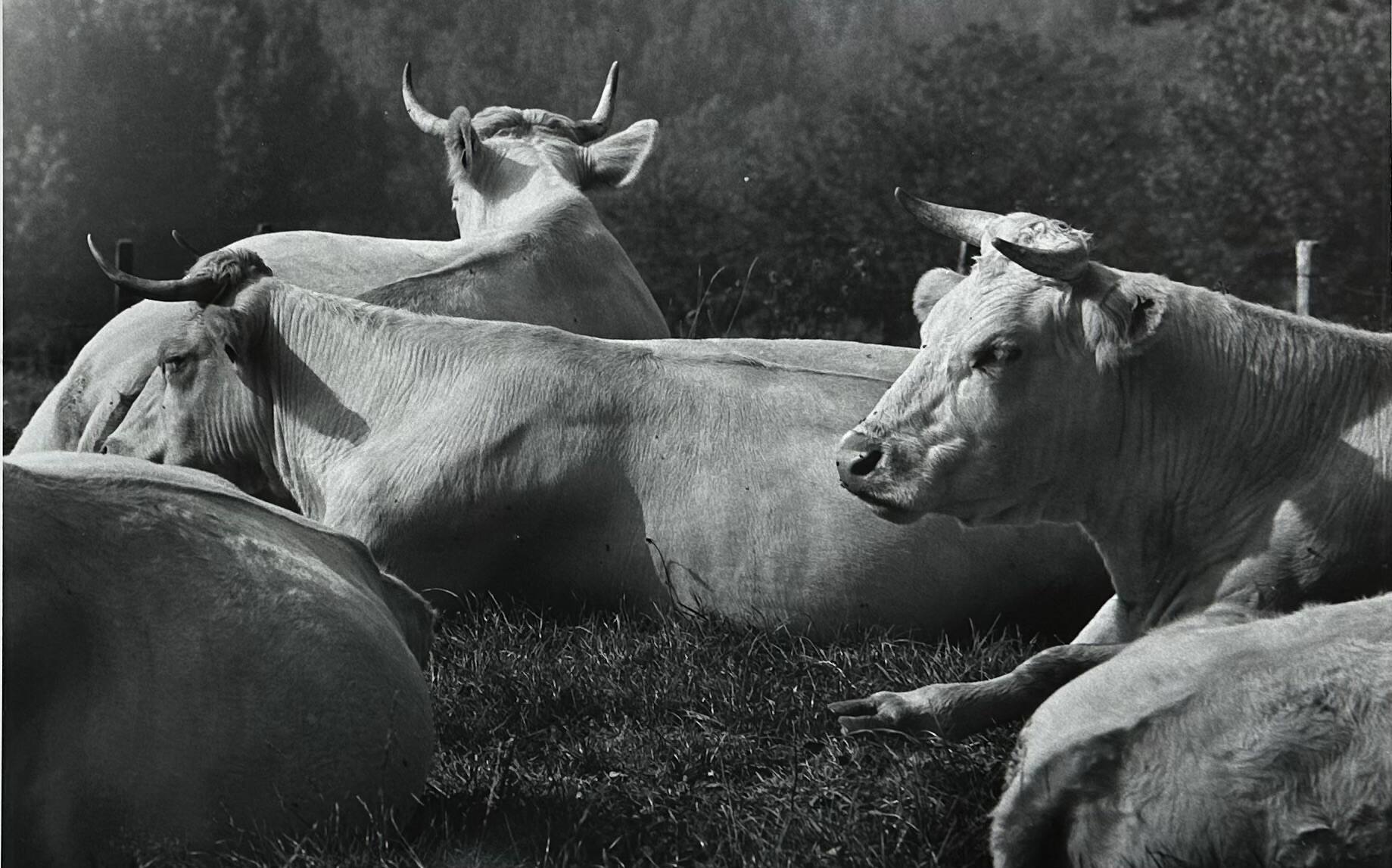 DescriptionImage of cattle with horns lying in a grassy field.ProvenanceLouis Stettner;