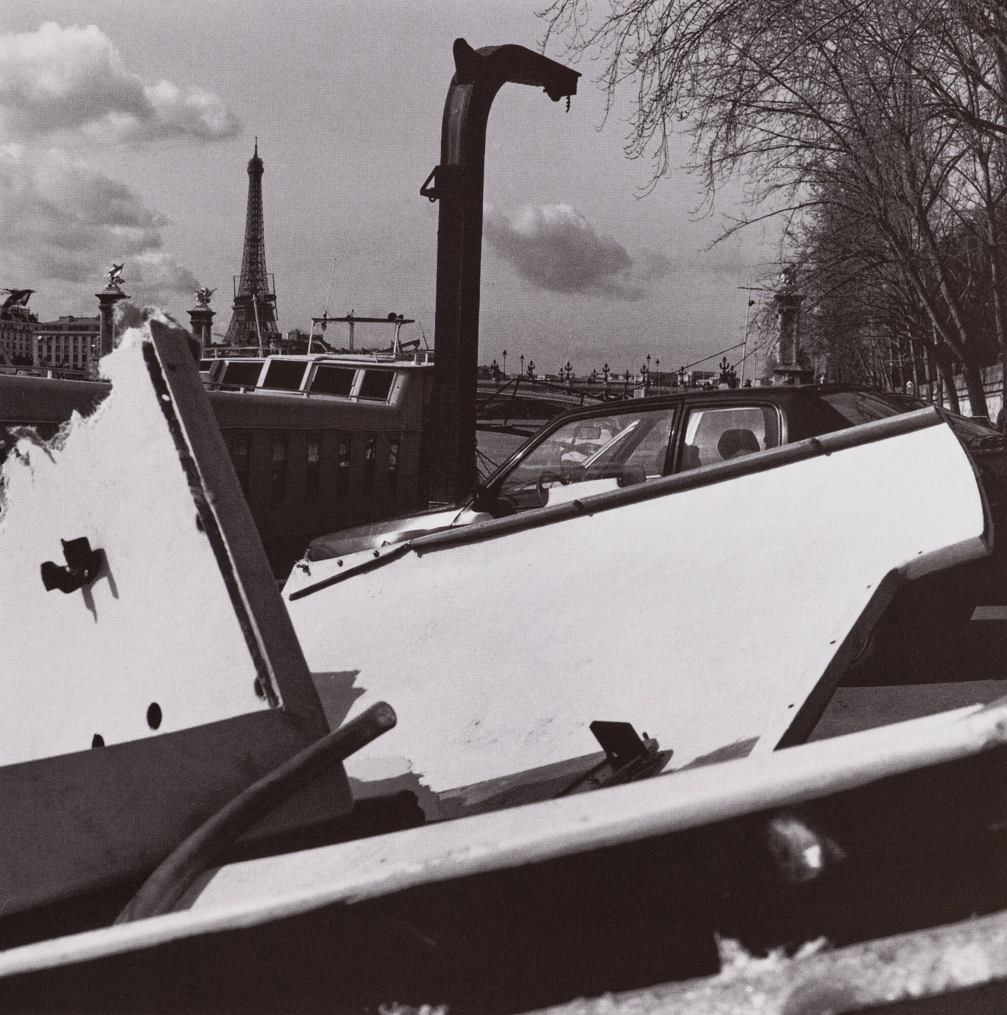 DescriptionImage of the Eiffel Tower upper left with a parked car and broken boat parts in the foreground.ProvenanceLouis Stettner;