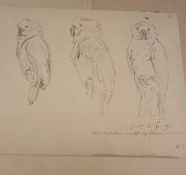DescriptionA pen and ink drawing on paper of three cockatoos. At left and at center, the cockatoo is in profile facing to the viewer's left. At the right, the cockatoo faces the viewer. The drawing is inscribed by the artist; "J. d. P. 2 Juin 1896. / A. M. Angelo Mariani cordialement E. VAN MUYDEN"Provenance