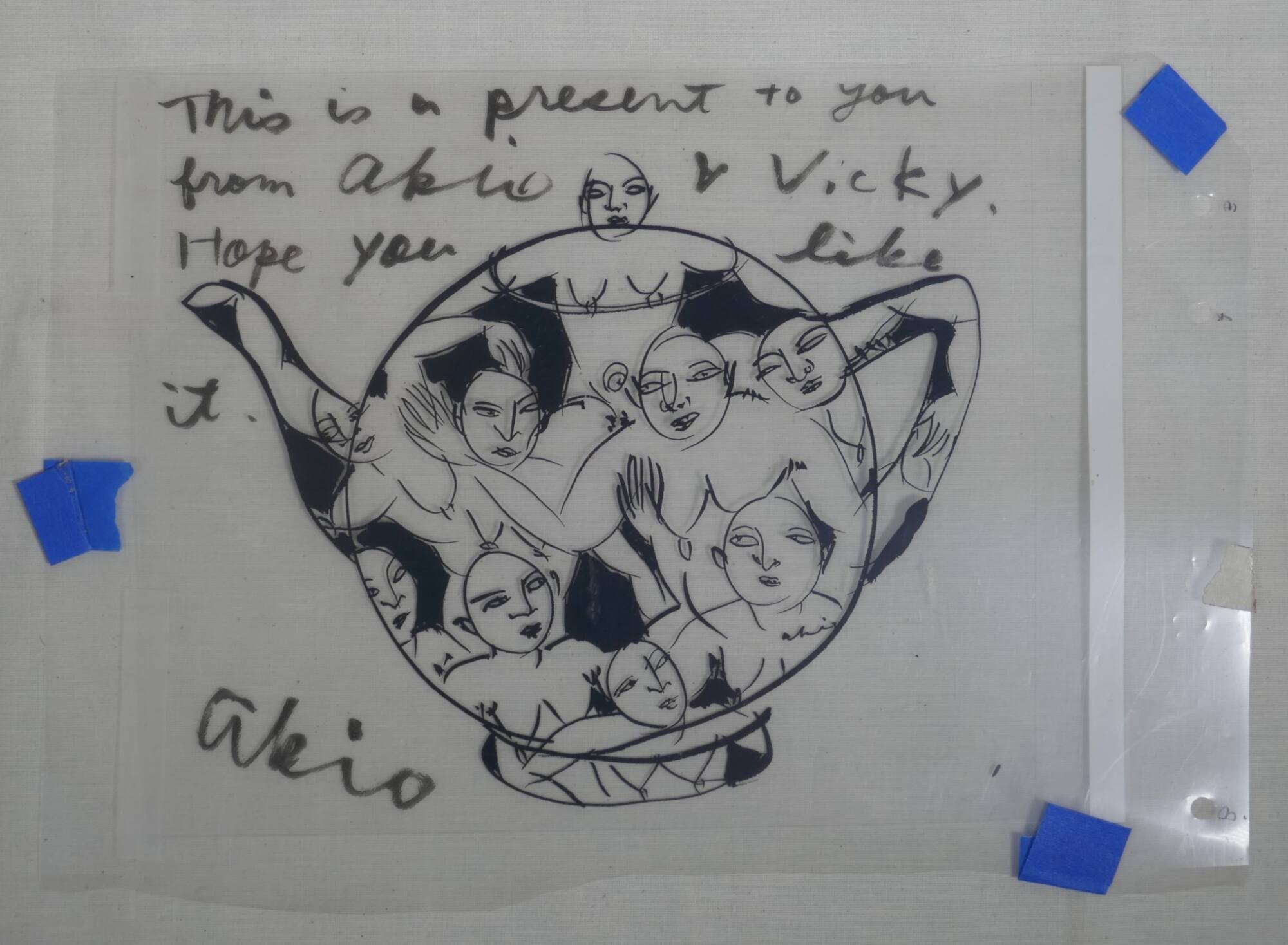 Gift drawing with handwritten personal note for Mike Sims, undated Mylar