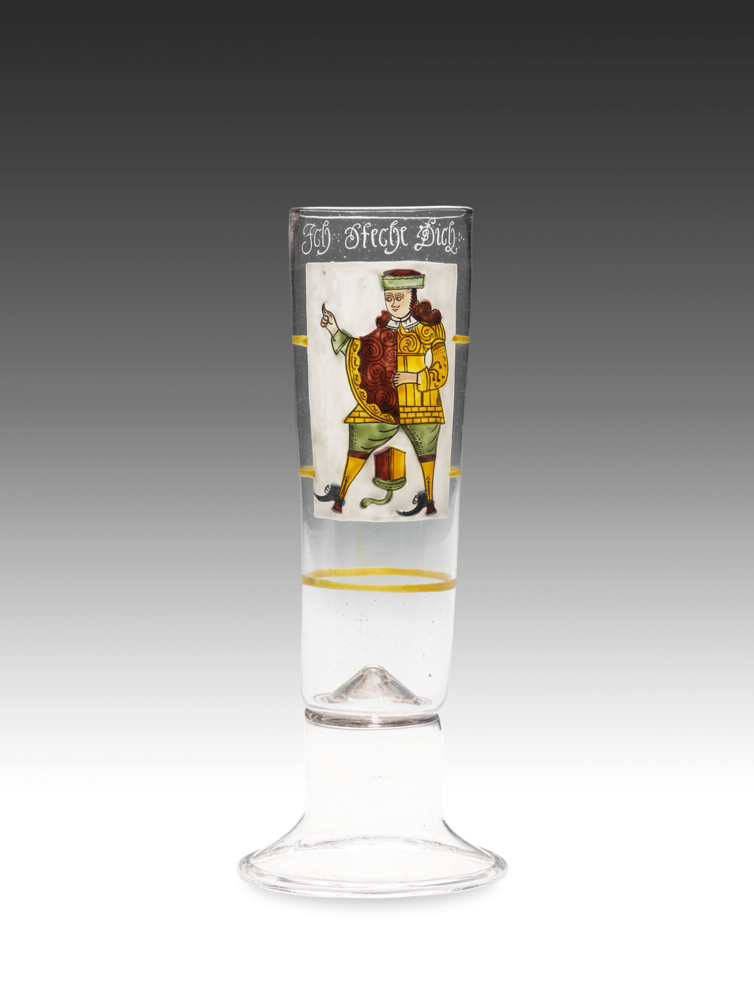 DescriptionPasglas with painted with enamel, including four rings with playing card of a Jack. Enameled text: "Ich steche Dich" (I will stab you).Exhibition HistoryThe European Fine Art Fair (TEFAF), Maastricht, Netherlands, March 9–14, 2024