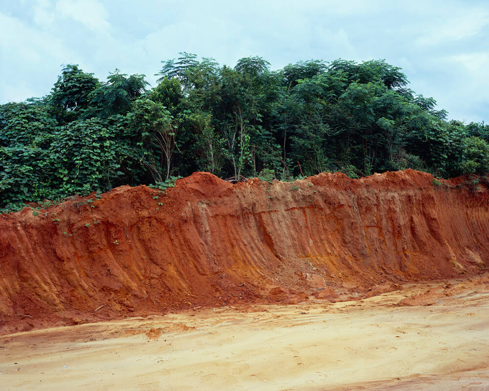 The red-orange tint of sandy red clay distinguishes Alabama soil. Ross references that attribute in this photograph but pictures the dirt bulldozed into a pile, rather than as an idyllic feature of the Southern landscape. Etched into the soil's surface, the word "Political" prompts us to consider the land as a scarred socio-political space, with a history of racial violence and environmental destruction.