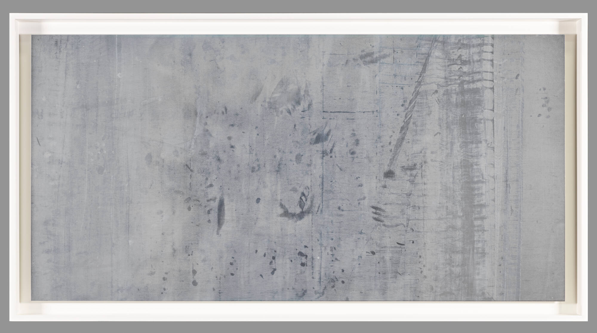 DescriptionAbstract image with a silver metallic sheen of irregular vertical and horizontal markings, finger prints, creases, and scratches across surface.Provenance