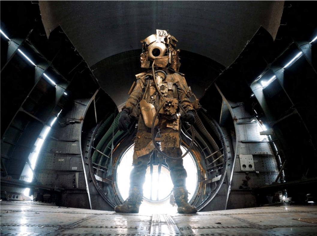DescriptionThis colored image depicts an individual in a golden makeshift spacesuit stood in the empty belly of a cargo plane. The figure appears to tower over the viewer as their image has been captured from floor level.Exhibition HistoryCollege of Visual Arts and Design Galleries, University of