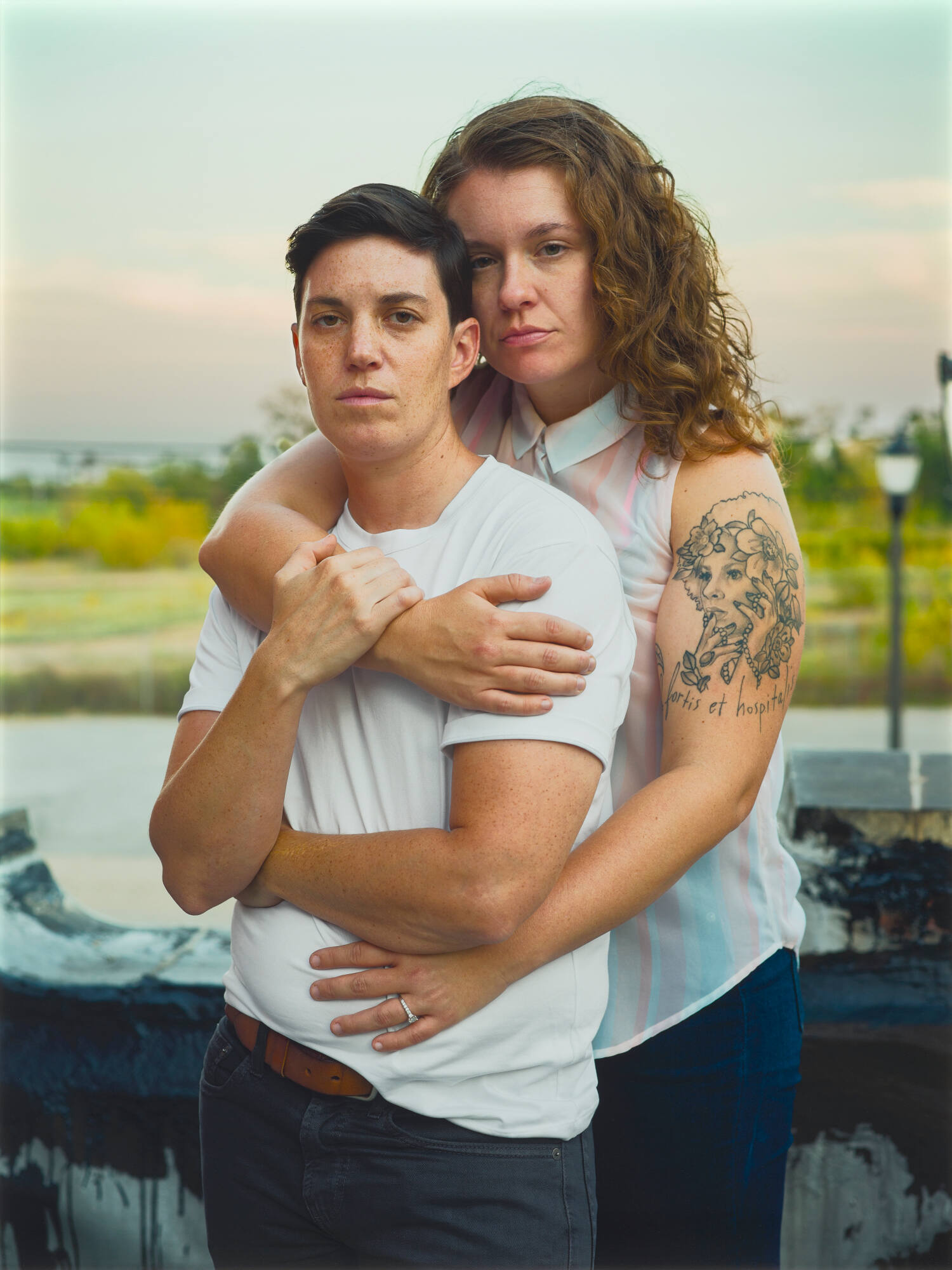 DescriptionImage of two people embracing, both face the viewer, while standing outside. They are dressed in white shirts and dark pants.ProvenanceJess T. Dugan, St. Louis, MO ;