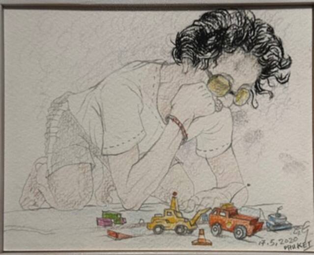 MediumPencil, ink, stickers, and paper cut-out on fine art paper