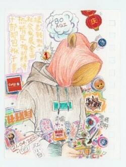 MediumPencil, ink, stickers, paper cut-out on fine art paper