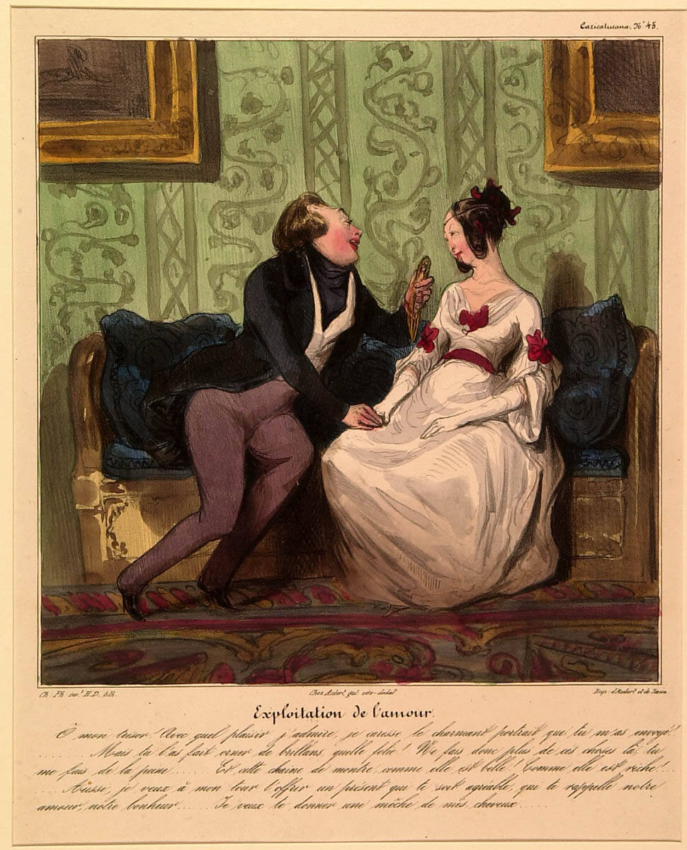 George L. McKenna, Prints, 1460-1995 (Kansas City, MO: Nelson-Atkins Museum of Art, 1996), 295-96, as Caricaturana (Les Cent Robert Macaire): Exploitation of Love.