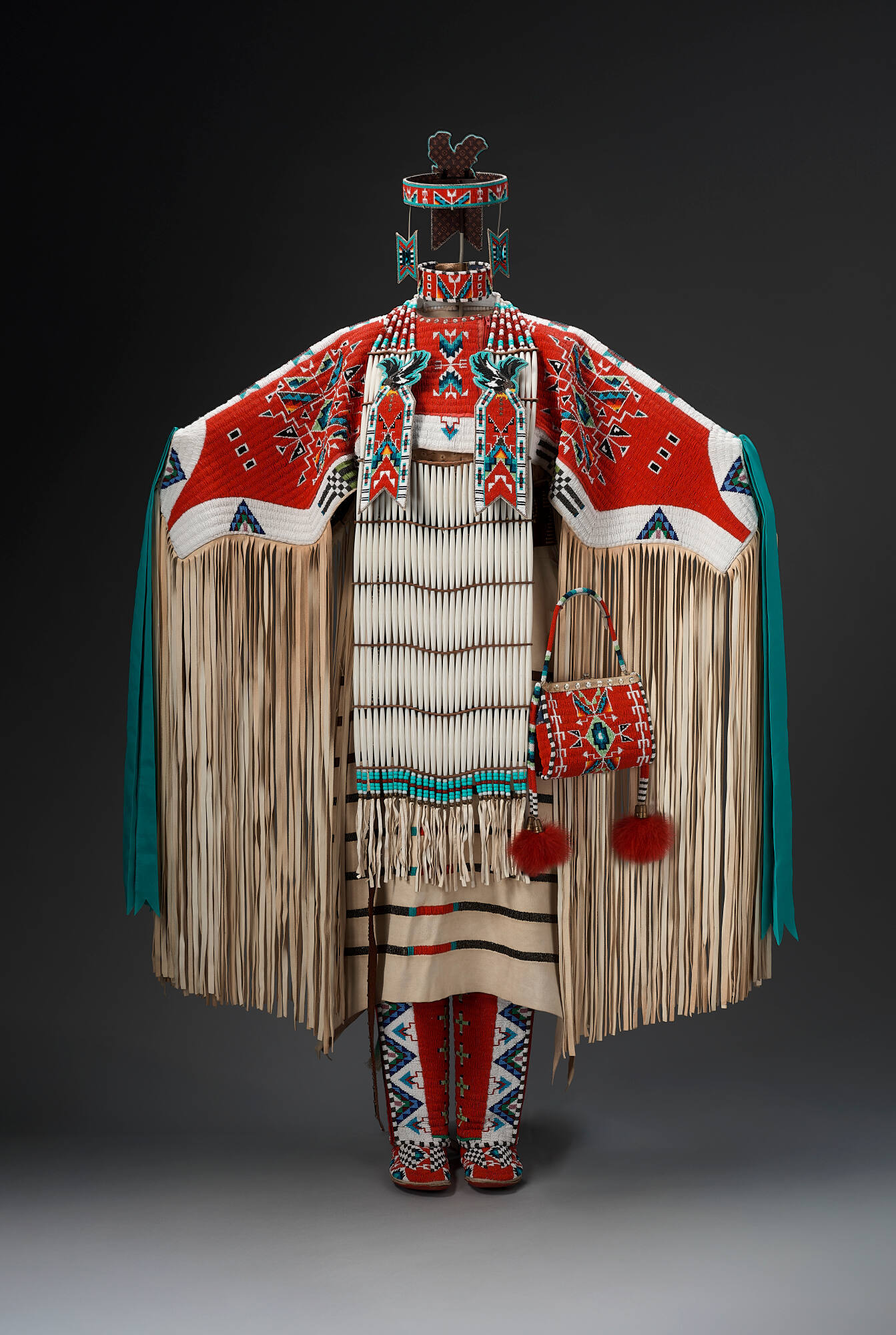 DescriptionWoman's traditional beaded dance regalia with accompanying leggings, moccasins, a skirt, and an arm shawl.Provenance