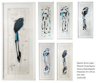 DescriptionThis suite of six vertically oriented prints depicts, in various degrees of abstraction, a blue and black bird with long tail feathers (the quetzal of the title). In each print, the bird is situated against a backdrop of numbers and letters.ProvenancePurchased from the artist by The Nelson-Atkins Museum of Art, Kansas City, MO, 2025.