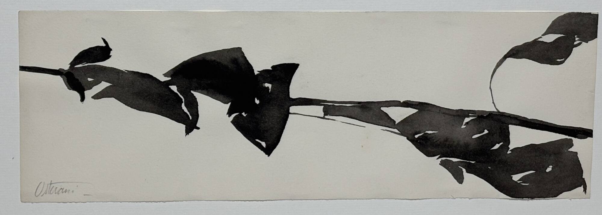 DescriptionThis small ink and watercolor painting on paper is one of a series of studies for the Goldberg Variations. The work depict rose stems with leaves rendered against the white ground of the bare paper. Wet black ink and paint is applied with a brush, which gives variation to the value and texture of the media.