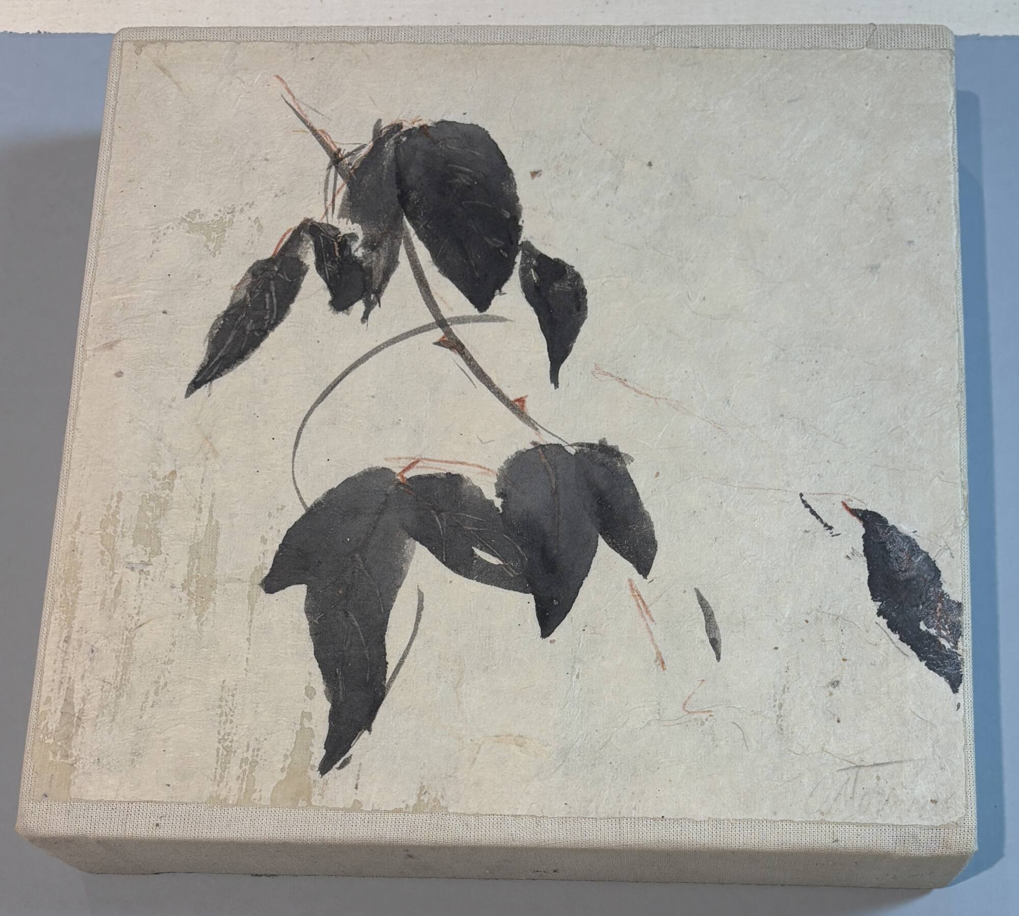 DescriptionThese three small ink and watercolor paintings on paper, mounted on small canvases are studies for the Goldberg Variations. These works depict rose stems with leaves rendered in different compositions. Wet black ink and paint is applied with a brush, which gives variation to the value and texture of the media and imbues the studies with a sense of energy. These studies reveal how Ostovani approached his subject and worked out the imagery of the Goldberg Variations.