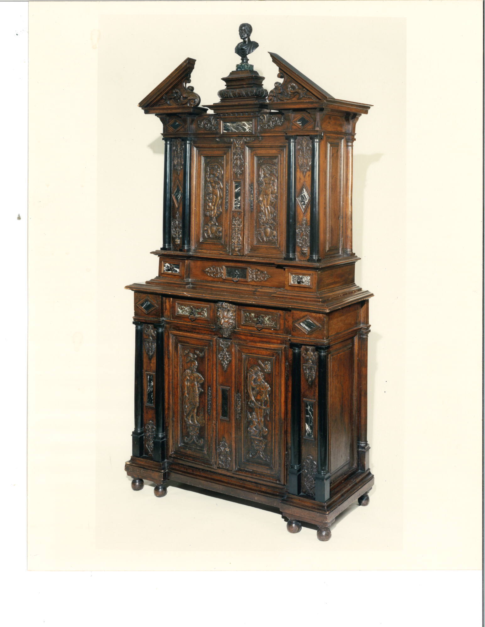 Purchased at their posthumous sale, Gothic and Renaissance Art…Furniture, Decorative Objects. Property from the Estate of the Late Stanley Mortimer, New York, Second and Final Part, Parke-Bernet Galleries, New York, December 2, 1944, lot 116, as Sculptured Walnut Cabinet à Deux Corps, by Joseph Brummer (1883–1947), New York, stock no. N6178, 1944-1947 [2];