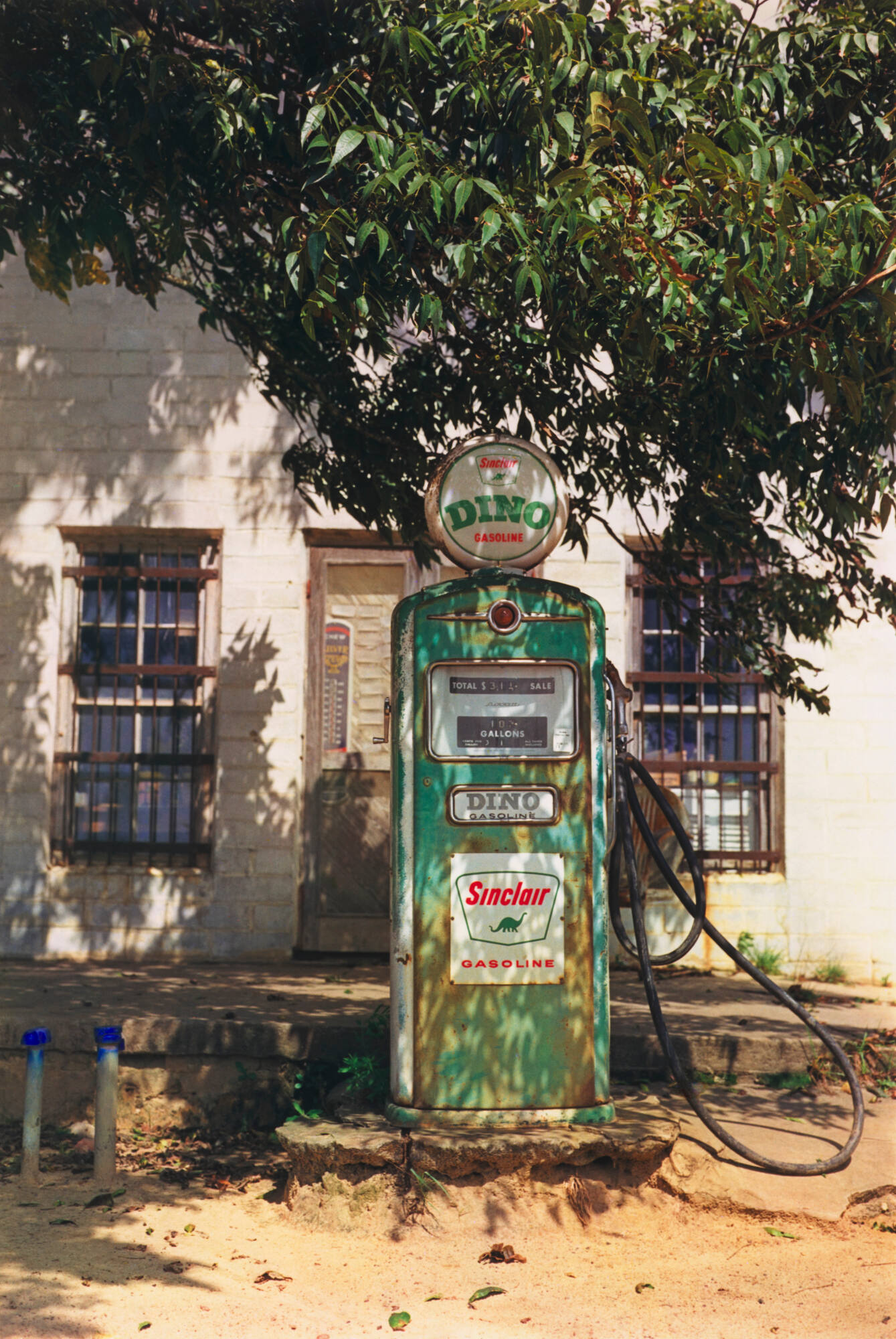 DescriptionImage of a green Sinclair gasoline pump on a broken concrete platform just below a tree which casts shadows.ProvenanceWilliam Eggleston, 2011;