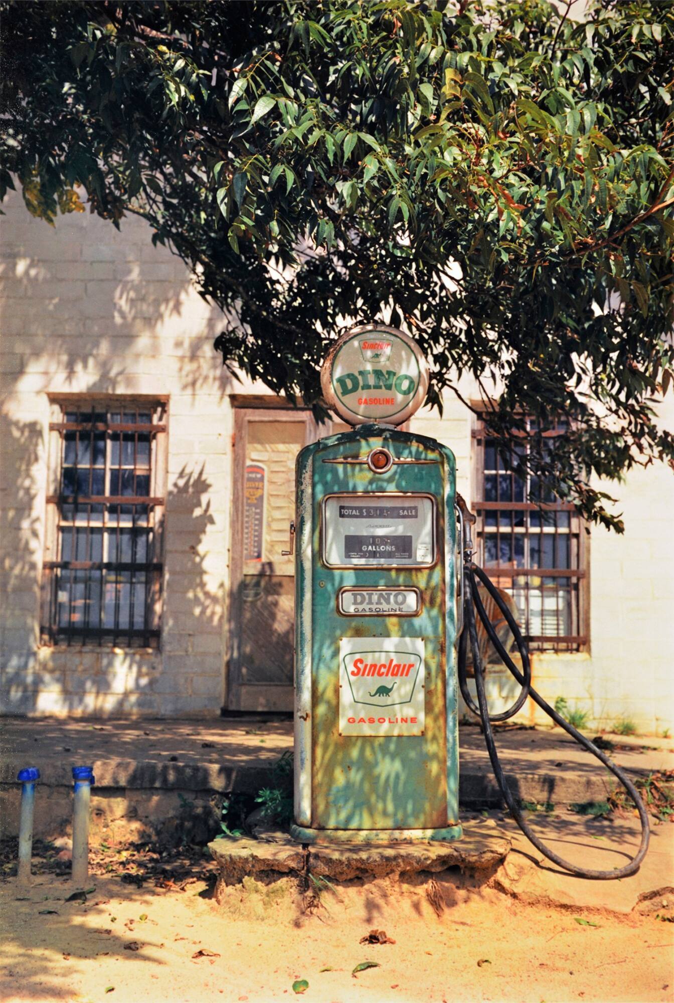 DescriptionImage of a green Sinclair gasoline pump on a broken concrete platform just below a tree which casts shadows.ProvenanceWilliam Eggleston, 2011;