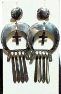 DescriptionA pair of silver earrings of crescent moons with dangling crosses: symbols of the Native American Art Church.Provenance